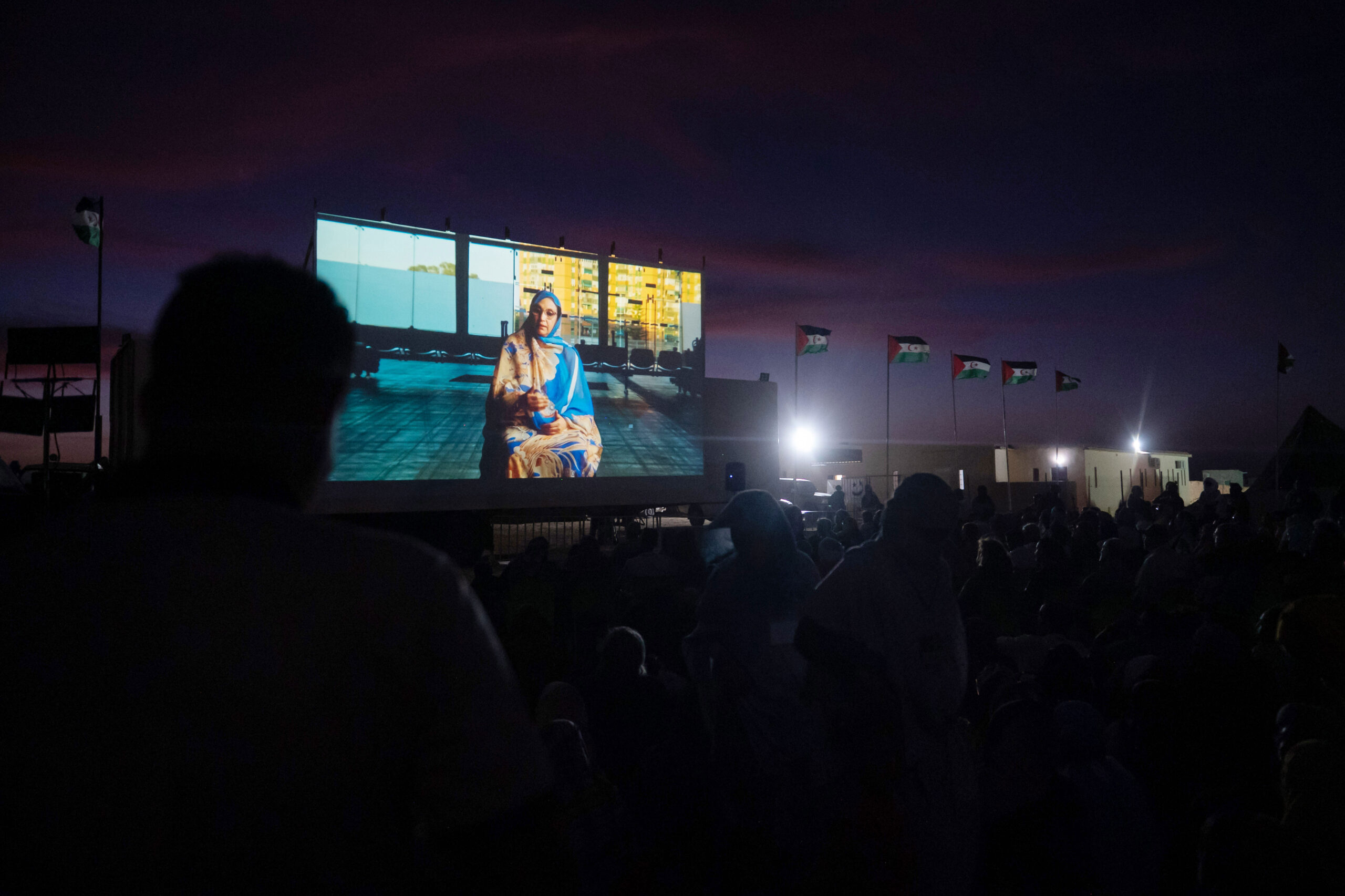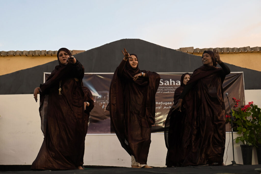 Esta inauguración sirvió de perfecto prólogo para la ceremonia de apertura de esta edición en la que una vez más el público asistente disfrutó de una experiencia inmersiva en la cultura saharaui. Las actuaciones de los grupos saharauis Luali y Tirs y el cantante popular Mofid Ahmed animaron la velada hacia la puesta de sol para dar paso a las proyecciones.